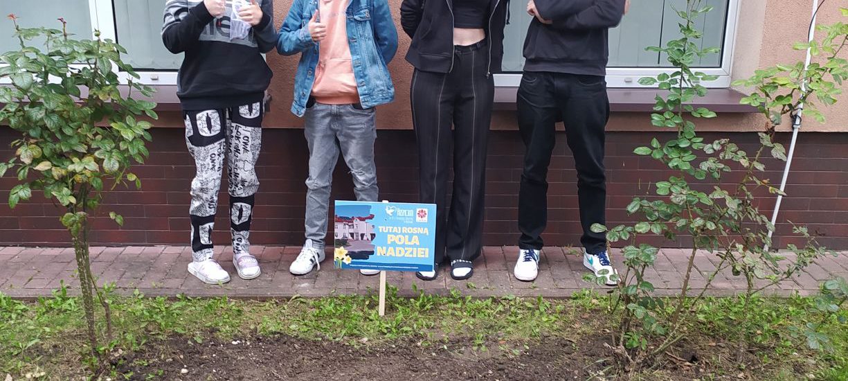 Od lat nasza placówka organizuje różnego rodzaju zbiórki, loterie czy kiermasze, mające na celu wsparcie osób potrzebujących. W tym roku szkolnym poszerzyliśmy wachlarz naszych działań o udział w tworzeniu „Pól Nadziei”. W piątek 23 września br. wychowanki z miechowskiej Bursy Szkolnej uczestniczyły w akcji sadzenia cebulek żonkili w miechowskim Parku Miejskim, jak również na terenie samej Bursy. Wiosną, kiedy kwiaty zakwitną, zostaną ścięte i rozdane, a zebrane fundusze przekazane zostaną miechowskiemu Hospicjum jako symbol solidarności z osobami potrzebującymi.